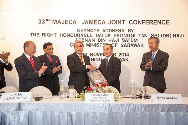 The theme of the 33rd Joint Conference was “LEP 2.0 – Japan and Malaysia”. The 33rd Joint Conference was held in Kuching to showcase the diversity of Sarawak and its vast business potential to our Japanese friends. Sarawak has abundant natural resources and natural environmental attributes that lends itself to the development of business opportunities that can harness these attributes under LEP2 on a sustainable basis. The Joint Conference was successfully built upon the strong Japanese involvement already present in Malaysia, and in particular Sarawak. The Malaysian Government under the broad policy of LEP 2 already underscores the support given to the private sector of Malaysia and Japan, that includes the members of MAJECA and JAMECA to further advance its business relationships.