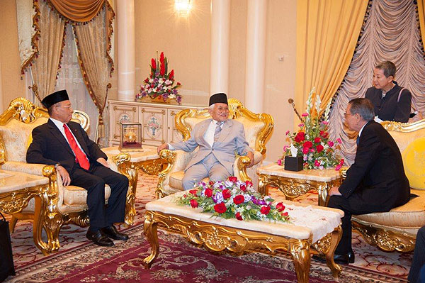 Courtesy Call on (2nd from left) Tuan Yang Terutama Yang Di-Pertua Negeri Sarawak, Tun Pehin Sri Haji Abdul Taib Mahmud with (left) Tan Sri Azman Hashim, President of MAJECA and (right) Mr Mikio Sasaki, President of JAMECA at Astana Negeri, Petra Jaya, Kuching