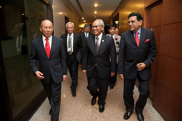 (left to right) ) Tan Sri Azman Hashim, Dato’ Md Taib Abdul Hamid, The Hon. Datuk Patinggi Tan Sri (Dr) Alfred Jabu anak Numbang, Tan Sri Datuk Abdul Hamid Egoh and Datuk Seri Mohamed Iqbal leaving the dinner venue
